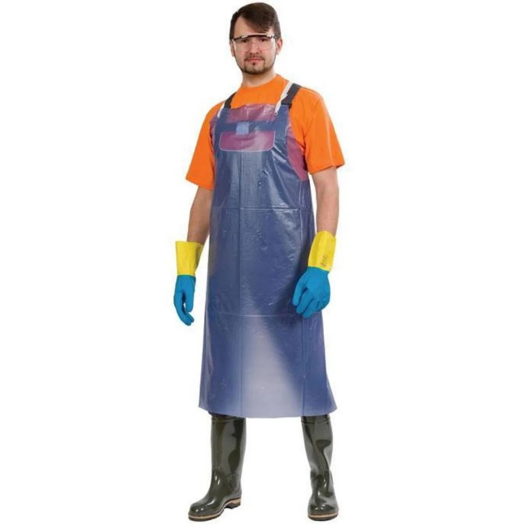 Прочный и очень комфортый фартук за счет высокой эластичности, малого веса и метода крепления "ЧЕРЕЗ ПЛЕЧИ" (ленты-завязки не натирают шею, не оказывают давления на шею, не сковывают движения). Предназначен для защиты от кислот и щелочей концентрацией до 50%, от жиров, масел, лаков и красок на их основе, продуктов нефтепереработки.
