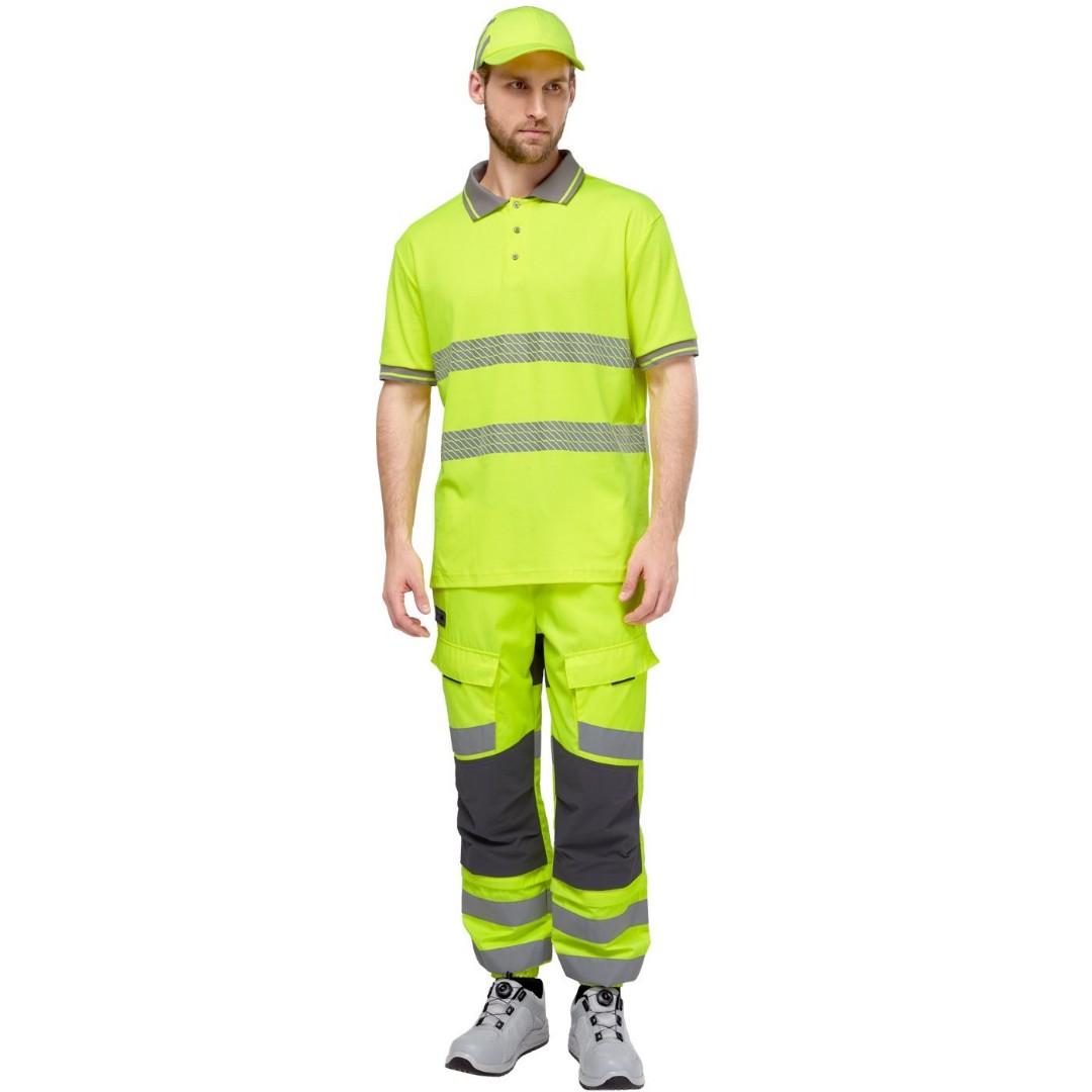 Флуоресцентный цвет и легкий материал в сочетании с яркими световозвращающими фигурными термотрансферными полосами делают данное изделие отличным вариантом сигнальной спецодежды, обеспечивающей повышенную видимость в летний период и создающей комфорт.