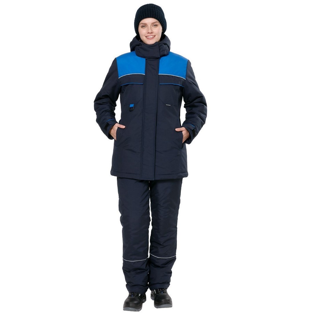 Костюм женский рабочий утепленный, состоит из куртки и полукомбинезона.