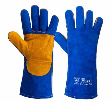 Краги из термостойкого синего спилка для защиты от механических воздействий, брызг и искр расплавленного металла. По всей поверхности краг - хлопчатобумажная подкладка. Вшивной большой палец, упрочненный мизинец.Толщина спилка: 1,1/1,2 мм.Длина краги: 35 см.Исключительный комфорт и долгий срок службы. Краги идеально подходят для сварки и автогенной резки металлов. ВСЕ ШВЫ ПРОШИТЫ КЕВЛАРОВОЙ НИТЬЮ